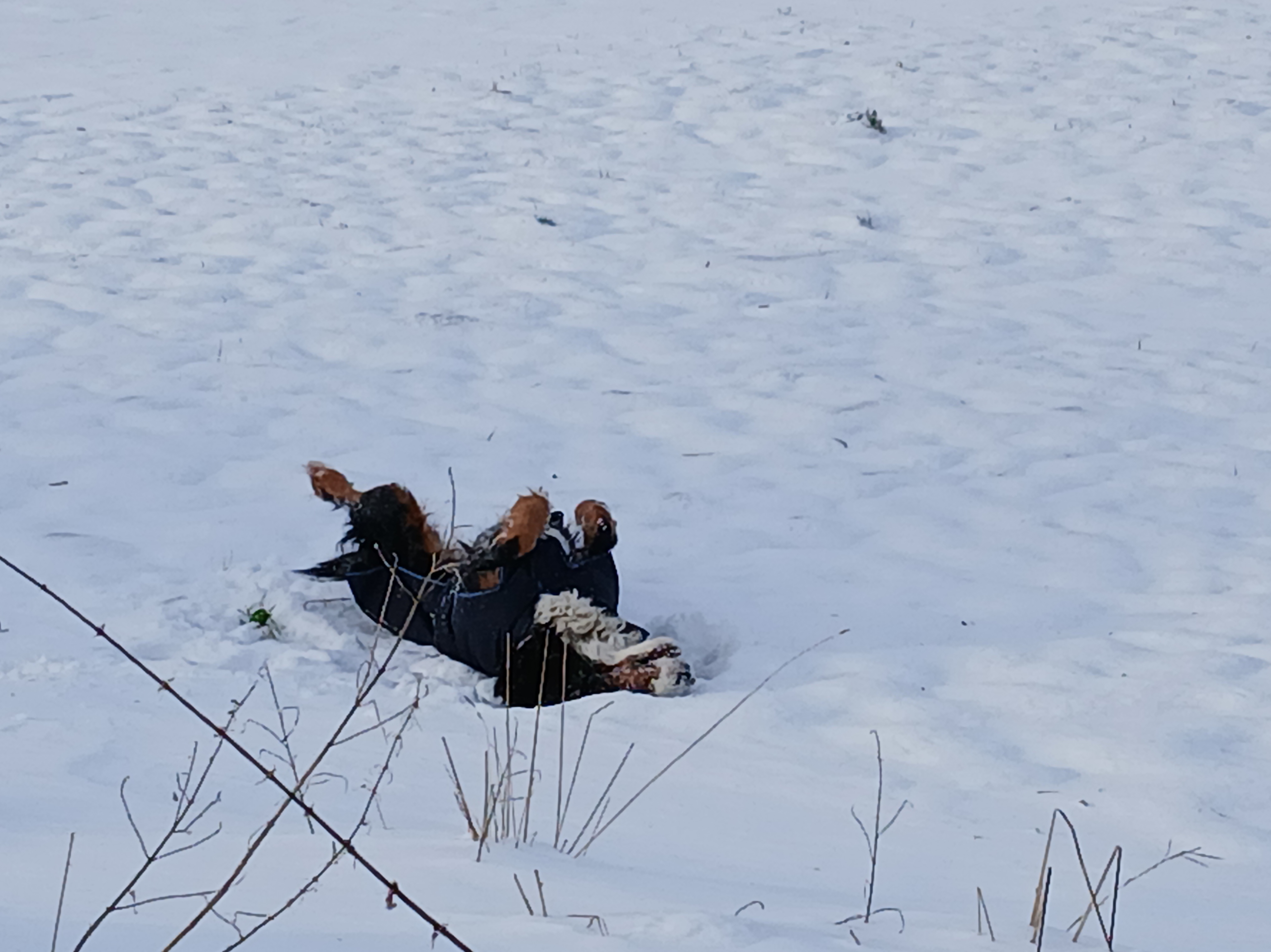 Wir fuhren also wieder zurück, zum Unglücksort. Ich schaute mir die Stelle an und ich frage mich immer noch wie das passieren konnte und war nur froh, dass Rosi nicht vor mir bei den Büschen ankam. Wir hatten einen tollen Nachmittag und haben wieder wunderbare Fotos gemacht. Rosi hat noch Schnee gefunden und wieder Rosi Schneeengel gemacht.